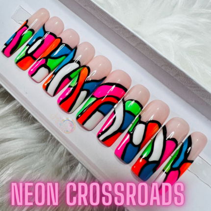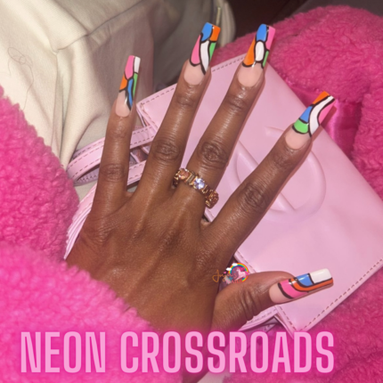 MID length Almond Shape 3D nails, that also has Holographics, Ombré, Lines and much much more. ALL GEL, Ready to Ship in size Medium.